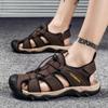 7236 Sandálias masculinas de couro biqueira coberta de sapatos de praia costuradas à mão tamanho grande esportes ao ar livre lazer montanhismo sapatos de buraco para homens