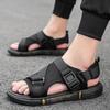 Sandálias masculinas ao ar livre casual de meia-idade e idosos sapatos de praia couro genuíno verão masculino pai chinelos one-shoes dual-use esportes