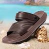 Sandálias Masculinas Verão Sapatos Casuais Confortáveis Versátil para Tudo Sapatos para Exterior Praia Slip-on Duas Vias Solado Macio Vazado Sandálias de Couro