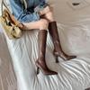 Pernas longas! Coreia do Sul Botas Stretch de Cano Alto Pontiagudas para Mulheres Baixas Salto Super Alto Botas de Cavaleiro