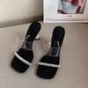 Sandálias Transparentes com Strass Estilo Europeu e Americano Novo Estilo de Verão 2025 para Uso Diário Preguiçoso no Escritório Sandálias de Salto Baixo