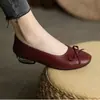 Sapatos Rasos de Couro Pequenos com Bico Redondo e Laço, Sapatilhas de Boca Rasa, Tênis Casuais Simples de Moda Coreana Feminino, Sapatos de Mãe 2025