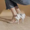 Lindas sandálias de salto alto femininas, design de socialite com temperamento, senso de nicho, bico fino, com laço, atacado, novos sapatos para primavera e verão
