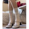 Sapatos de Salto Alto de Bico Redondo para Mulheres 2025 Novo Estilo com Laço Delicado Flats de Boca Rasa Sapatos Mary Jane Franceses com Strass