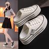 Tênis de Lona de Sola Grossa para Mulheres 2025 Primavera Versátil Bico Redondo Cano Baixo Sapatos de Plataforma para Pessoas Baixas Sapatos Brancos Casuais Esportivos