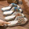 2025 Novos Chinelos de Algodão e Linho Femininos Celebridade da Internet Casa Linho Quatro Estações Casa Sola Grossa Japonês Primavera e Outono Mops de Chão