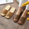 Chinelos de Linho Atacado Primavera e Verão Novos Chinelos de Linho para Casa Feminino Interno Antiderrapante Casal Masculino e Feminino Piso de Madeira Vazado