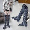 Botas Cowboy Femininas Primavera e Outono 2022 Respiráveis Acima do Joelho Salto Grosso Salto Médio Alto Moda Elásticas Botas de Cano Alto Estilo Coreano