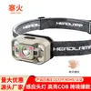 2024 novo LED transfronteiriço acenando indução farol de duas cores USB tipo cabeça recarregável iluminação externa luz de corrida