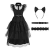 Traje de Cosplay da Família Addams Vestido de Baile Halloween Wednesday Addams Vestido Preto Roupa de Cosplay