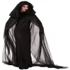 Fantasia de Halloween Cetim Preto Capa do Ceifador Macabro Adereços Capuz Festival Fantasma Fantasia de Capa para Adultos Venda por Atacado