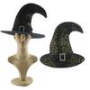 Chapéu de bruxa de Halloween, maquiagem adulta, adereços de fantasia, atmosfera de festival, chapéu de mago com gancho curvo, chapéu de estrela