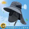 Novo chapéu de sol masculino transfronteiriço com grande aba e máscara, conjunto de três peças para pesca, atividades ao ar livre, montanhismo, chapéu de pescador com cobertura facial