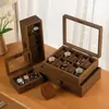 Caixa de Exibição de Relógio de Noz Transparente com Tampa à Prova de Poeira Oxidação Coleção Relógio Caixa de Armazenamento de Relógio Mecânico