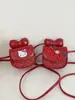 Bolsa Transversal Feminina Fofa e Fashionável de Ano Novo Gato com Laço Desenho Animado Estilo Pequeno Chanel Bolsa de Ombro Requintada Infantil Menina