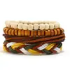 Joias Mais Vendidas Transfronteiriças Conjunto Criativo DIY de 4 Peças Pulseira Retrô Simples Ajustável Pulseira Trançada de Couro Bracelete