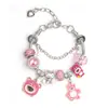 Pulseira Panjia Dora DIY Beaded Cross-border Explosions Bear Pendant Alloy Dropping Oil Sticky Diamond Pulseira de letras em forma de coração