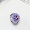Nova Pulseira Estilo Bandeja com Contas Flor de Esmalte Prata-Roxa, Contas Grandes 3D Flor Cravejadas de Strass Acessórios para Pulseira DIY