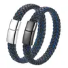 Atacado do Fabricante Novo Pulseira de Couro Trançado com Corrente de Aço Inoxidável com Fecho Magnético, Bracelete de Couro, Personalizável com Logo, Venda Quente