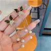 Brincos Longos com Borla Preta Super Fada Retro Pérola Feminino Versátil Dois Brincos