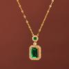 Wen Jian TikTok terno explosivo micro-incrustado zircão jóias quadrado cor gema pingente hip-hop titânio aço colar brincos