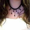 Gargantilha de renda Tromande vintage com borlas e pingente de renda preta