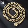 Corrente Cubana Clássica Nova 13mm Liga de Metal Totalmente Cravejada em Diamante Estilo Hip-Hop Europeu e Americano Colar Banhado a Ouro Pulseiras para Homens e Mulheres