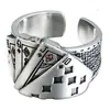 Anel de Poker Quadrado Retro Dominador com Diamante Aberto Hip-Hop para Homens e Mulheres Joias Atacado