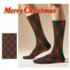 1 Par de Meias Xadrez Clássicas Vermelhas e Verdes Douradas, Vintage Poliéster Comprimento Médio Estampa Digital Respirável Meias de Natal para Reunião de Família e Presente de Feriado