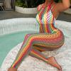 Europeu e Americano Transfronteiriço 2024 Outono Gata Magra Transparente Sexy Malha Costurada Macacão Feminino Cintura Alta