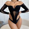 Design de Nicho Preto Roupa Íntima Transparente de Malha Feminina Estilo Europeu e Americano Sexy Sem Costas Patchwork Body Modelador