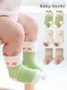 Meias para Bebê Recém-Nascido Outono e Inverno Espessadas com Forro de Fleece Quentes Antibacterianas Listradas Desenho Animado Meias de Cano Médio para Meninos e Meninas