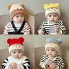 Chapéu Infantil Coreano Qiunan Inverno 2025 Urso Desenho Animado Bebê Cachecol Quente Conjunto de Duas Peças Atacado