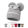 Inverno infantil arco bola de pelo duplo quente proteção de ouvido meninas chapéu de malha macio pérola bonito bebê chapéu de lã