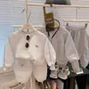 Roupas masculinas europeias e americanas para crianças estilo primavera e outono camisa branca de manga comprida top + calças roupas infantis de três peças