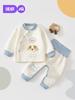Roupas divididas do bebê Roupas infantis de outono Calças de outono Categoria A Algodão puro primavera Pijama de bebê Roupas domésticas Ombro Fivela Terno de roupa interior