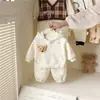 Outono e Inverno 2024 Nova Roupa Infantil Estilo Coreano Bebês e Crianças Pequenas Veludo Espessado Urso Roupas de Inverno Infantil Conjunto Infantil de Três Peças