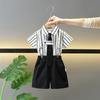 Roupas de verão para meninos, manga curta, 2025, novo estilo, camisa estilo ocidental para bebês, alça de ombro, calças, terno de duas peças, roupas de verão para crianças, da moda