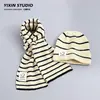 Chapéu infantil cachecol conjunto de duas peças para meninos e meninas inverno listrado lã quente bebê malha pulôver protetor de orelha cap tide
