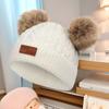 Conjunto de chapéu e cachecol de lã com bola de pelo duplo para crianças coreanas, conjunto de chapéu de proteção para orelhas de malha com bola de pelo de guaxinim espessado para homens e mulheres
