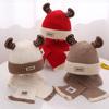 Conjunto de duas peças de chapéu e cachecol de inverno para bebês, estilo coreano, chapéu de malha quente, desenho animado, chifres pequenos, chapéu de lã infantil