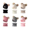 Urso Orelha Proteção Duas Peças Infantil Malha Chapéu Cachecol Duas Peças Outono e Inverno Lã Quente Chapéu Cachecol para Meninos e Meninas