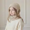 Conjunto de Chapéu e Cachecol de Outono e Inverno para Crianças Peça Dupla Chapéu de Tricô para Bebê Meninos e Meninas Chapéu Quente com Proteção para as Orelhas Conjunto Estilo Coreano