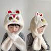 Novo gorro de bebê de pelúcia de desenho animado, luvas, cachecol, um conjunto de três peças infantil de pelúcia, fofo, quente, combina com tudo, inverno