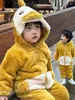 Outono e inverno flanela pijamas unicórnio engrossado crianças desenho animado pijamas de um corpo dinossauro animal casa roupas atacado