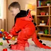 Pijama de Uma Peça de Flanela com Estampa de Dragão para Treinamento Infantil Desenho Animado Animal Roupas para Apresentação Infantil Roupas de Casa com Capuz