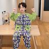 Pijama infantil estilo coreano, manga comprida, verão, fino, duas peças, terno fofo, super fofo, médio e grande, roupa de casa para crianças