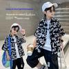 Camisa xadrez xadrez e linho infantil Outono Novo estilo coreano solto personalizado jaqueta de comprimento médio moda masculina e feminina