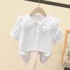 Uniforme escolar infantil Uniforme escolar de alunos do ensino fundamental Roupas de verão de manga curta Roupas de primeira classe de algodão puro Roupas de jardim Roupas de verão Camisa branca de renda para meninas