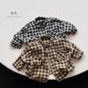 Camisa de manga comprida para meninos Camisa Infantil Primavera e Outono Novo Estilo Ocidental Bebê Camisa xadrez infantil Estilo coreano Base de desgaste infantil